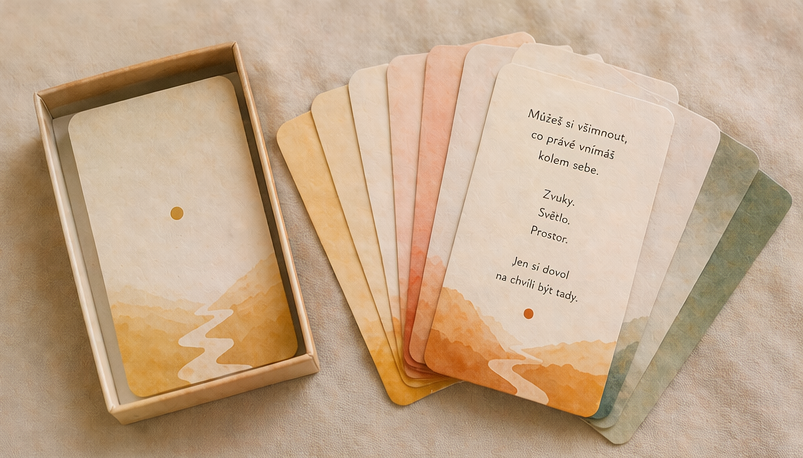 Právě vznikají karty Zastavení na cestě k sobě. Jedná se o malá zastavení, ke kterým se můžete vracet kdykoliv během dne. Tímto můžete vyjádřit svůj předběžný zájem, jakmile budou hotové, ozvu se vám. Děkuji za podporu